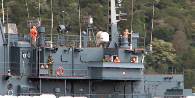 Rus Donanması'na ait 016 borda numaralı "Georgy Pobedonosets" isimli savaş gemisi, İstanbul Boğazı’ndan geçerek Marmara
