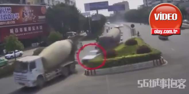 Çin'in Guangdong eyaletinde iki beton mikserinin arasında kalarak kağıt gibi ezilen otomobilin içerisindeki anne ve