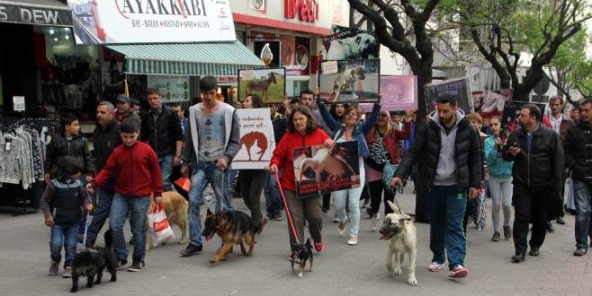 Bursa'da hayvanseverler, hayvan hakları ve ölümlerini protesto etmek için eylem yaptı.