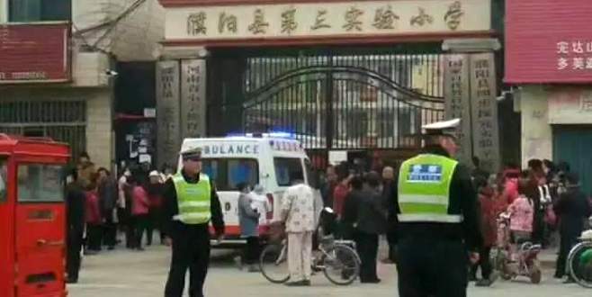 Çin'in Henan eyaletindeki Puyang kentindeki bir ilkokulun tuvaletine girmeye çalışan çok sayıda çocuğun neden olduğu