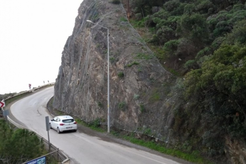 Mudanya Güzelyalı Kurşunlu yolu üzerindeki Beyazkayalar mevkiinde bir süreden beri meydana gelen heyelanı önlemek için
