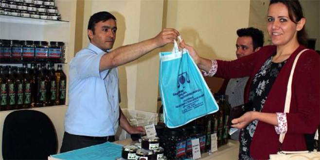 İmralı Adası'nın ve zeytinyağları, Bursa Adliyesi girişine açılan stantta satışa sunuldu.