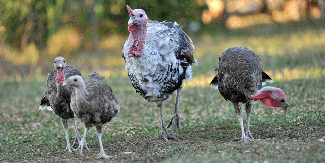 Bursa’da kuluçkaya yatan erkek hindi civcivlere sahip çıkıyor