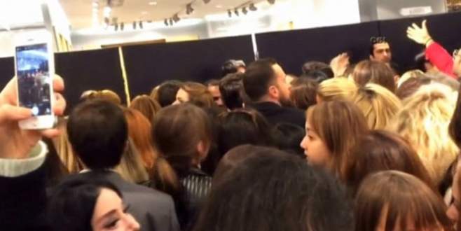 Bu izdiham, dünyaca ünlü bir markanın yeni koleksiyonunu tanıttığı etkinlikten. Ürün satın almak için birbirleriyle
