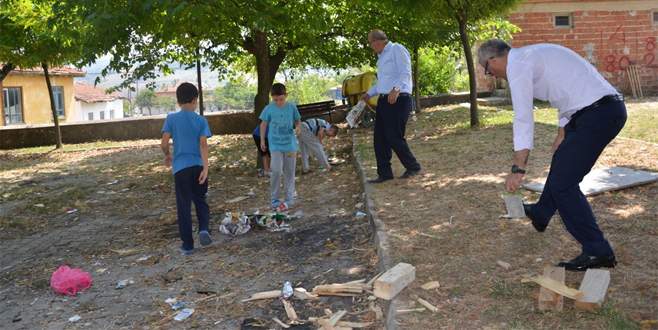 İznik Belediye Başkanı Osman Sargın, miniklerle çevre temizliği yaptı.