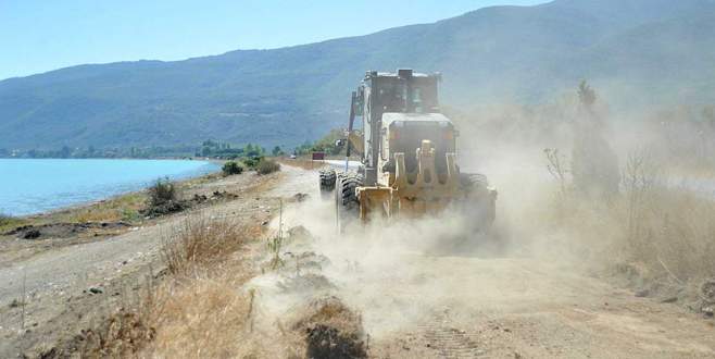 Büyükşehir Belediyesi ve Orhangazi Belediyesi ekiplerinin İznik Gölü Orhangazi sahilindeki düzenleme çalışmaları, karayolu ile sahil