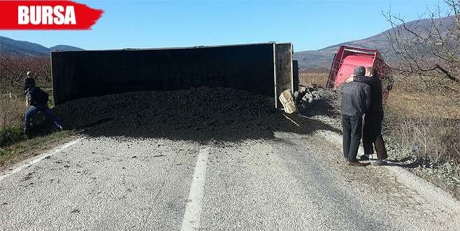 Bursa'nın İznik ilçesinde asfalt malzemesi yüklü bir TIR devrildi.- 09 Ocak 2016 Cumartesi 14:56