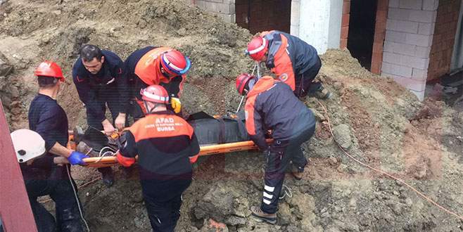Bursa'da Ertuğrul Mahallesinde yapılan kanalizasyon çalışması sırasında göçük meydana geldi.