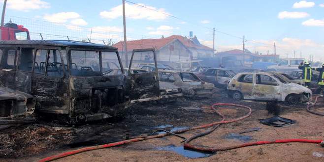 Konya'da bir otoparkta çıkan yangında yaklaşık 70 araç hasar gördü.- 16 Haziran 2016 Perşembe 16:42