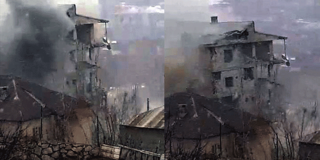 Diyarbakır’ın Sur ilçesinde teröristlerce çatı katında keskin nişancı polislerin görev yaptığı bir otele roketatarlı saldırı
