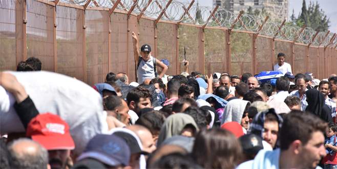Kilis Valiliği'nin izniyle Kurban Bayramı'nı ülkelerinde geçirmek isteyen Suriyeliler'in Öncüpınar Sınır Kapısı'ndaki geçişi sırasında izdiham