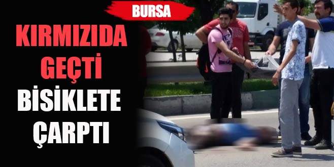 Bursa'nın Nilüfer ilçesinde kırmızı ışıkta geçtiği iddia edilen bir araç, karşıdan karşıya geçen bisiklet sürücüsüne