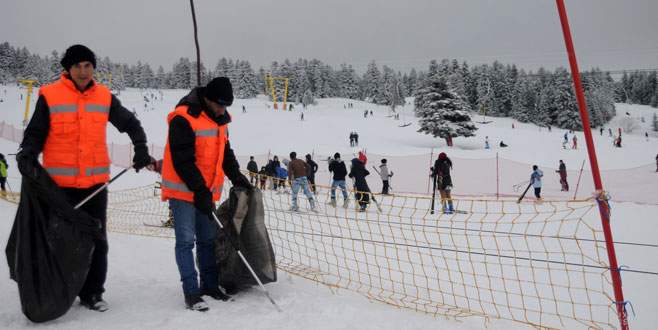 Türkiye’nin önemli kış turizm merkezlerinden Uludağ’da pistlerin temizliğinden sorumlu 10 görevli pist ve yol kenarında