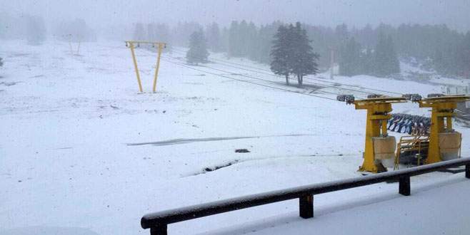 Kış turizminin önemli merkezlerinden Uludağ'a kar yağdı.- 18 Nisan 2017 Salı 12:09