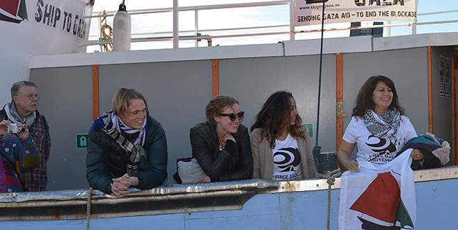 Gazze'ye gitmek üzere Göteborg'dan yola çıkan "Marianne" adlı gemi, Kopenhag'dan Almanya'nın Kiel şehrine uğurlandı.
