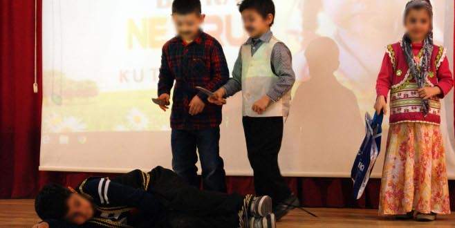 Kayseri’deki Hacı Sami Boydak İlk ve Ortaokulu’nda gerçekleştirilen nevruz etkinliklerinde, ilkokul çocukların kurban kesme oyunu
