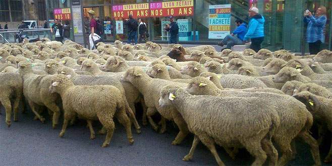 Fransa'nın Lyon kentinde çiftçiler, geçen pazartesi yanlarına toplam sayıları bin 500'e varan koyunlarını da