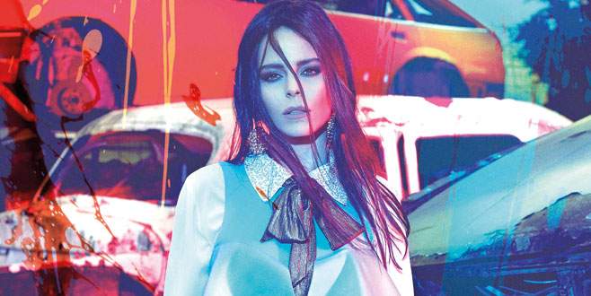 Dikkat çeken popçu Simge, bir magazin dergisi için araba mezarlığında objektif karşısına geçti.- 19 Nisan 2017 Çarşamba 18:16