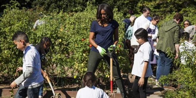 ABD Başkanı Barack Obama’nın eşi Michelle Obama, Beyaz Saray’ın mutfak bahçesindeki sonbahar hasadını öğrencilerle yaptı.