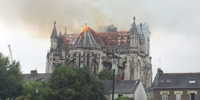 Fransa'nın Nantes kentinde bulunan ve 19. yüzyıldan kalma Saint-Donatien Bazilikası'nda, dün sabah saatlerinde yangın