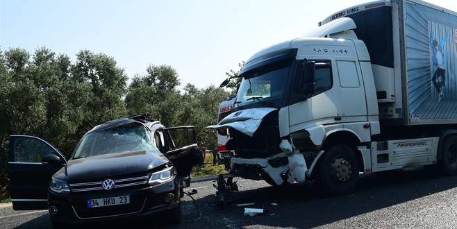 Bursa’nın İznik İlçesi'nde otomobil, sürücüsünün elma almak için yol kenarına park ettiği cipe çarptı. Kazada,