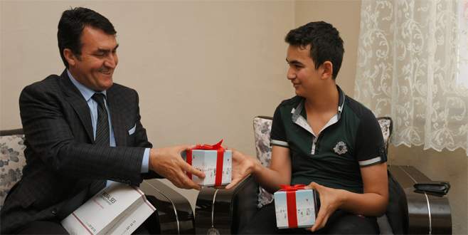 Osmangazi Belediye Başkanı Mustafa Dündar, doğuştan yüzde 85 işitme engeli olan 14 yaşındaki Recep Karadeniz’e