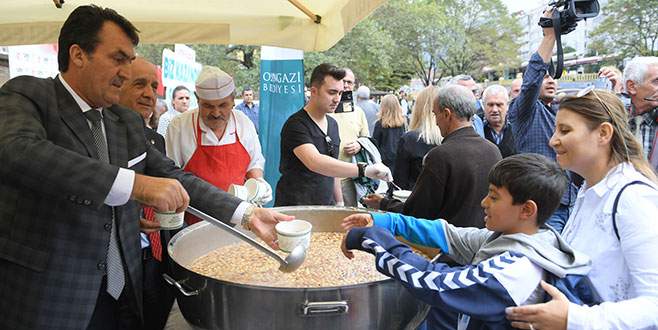 Osmangazi Belediye Başkanı Mustafa Dündar, Orhangazi Parkı'nda vatandaşlara aşure dağıtarak, Muharrem ayını kutladı.