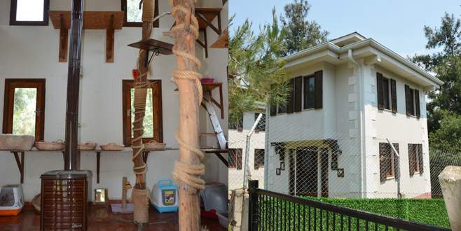 Osmangazi Belediyesi Sahipsiz Hayvanlar Doğal Yaşam Merkezi’nde yapılan 2 katlı kedi villalarında, arada engellilerin de