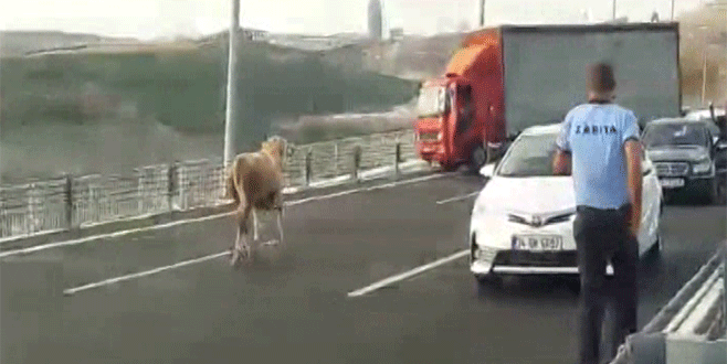Kaçan kurbanlık Osmangazi Köprüsü’nde sürücülere zor anlar yaşattı