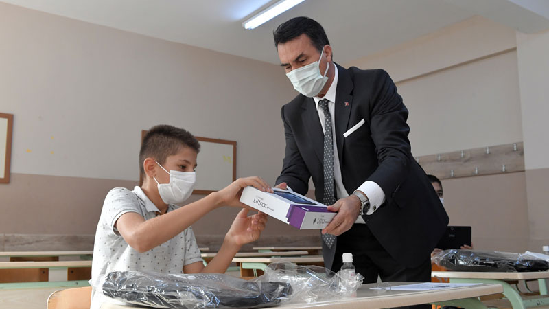 Covid-19 sürecinde bin 120 öğrenciye tablet ile 7 bin 200 öğrenciye çanta ve kırtasiye malzemesi
