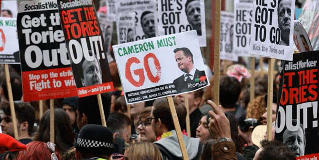 Cameron’ın istifasını isteyen protestocular Başbakanlığı kuşattı