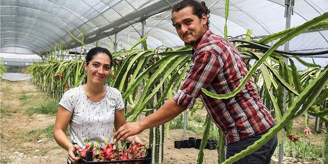 Adana'da yaşayan iki kuzen, bir televizyon programından görüp ektikleri ejder meyvesi olarak bilinen pitahaya bahçesinden