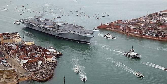 İngiliz Kraliyeti'nin yeni devasa amiral gemisi HMS Queen Elizabeth, test çalışmalarının yapılacağı ülkenin güneyindeki liman