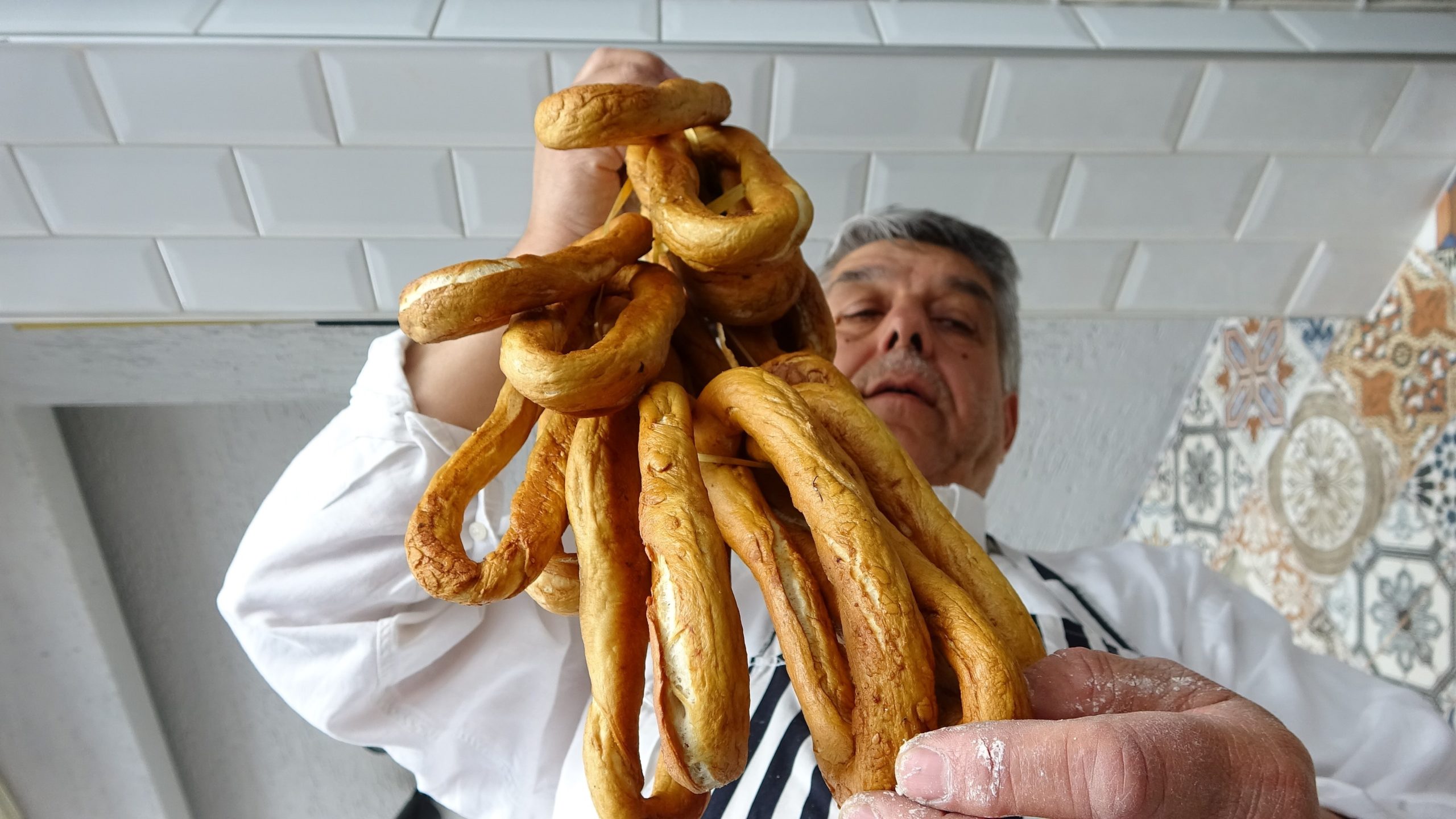 Bursa'da 100 yıllık fırının Ramazan ayında pişirdiği simit makarnası büyük rağbet görüyor.