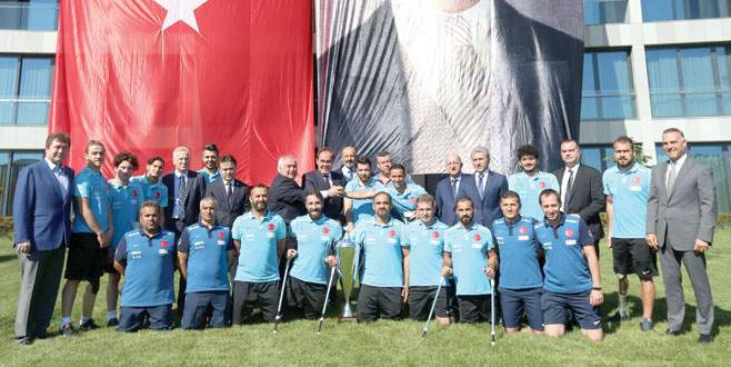 TFF Başkanı Demirören, Avrupa Şampiyonu Ampute Milli Takımı'nı Riva'da ağırladı.