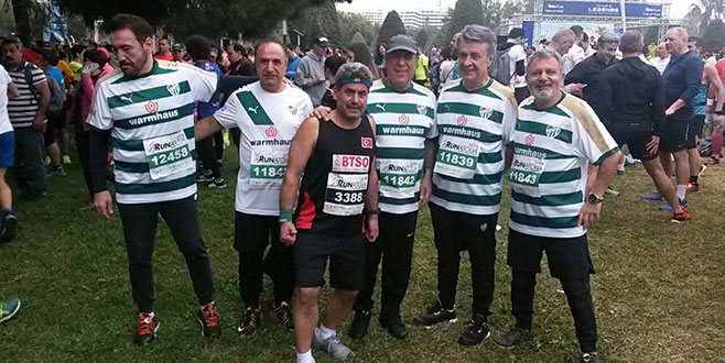 Antalya'da bu yıl 13. kez düzenlenen Runatolia Uluslararası Antalya Maratonu'na katılan Bursalı iş adamları Bursaspor