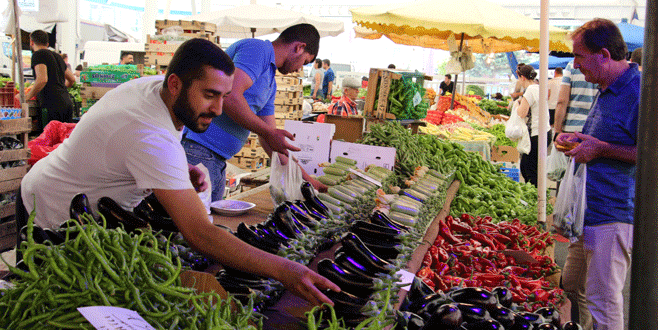 Pazar, market ve manav tezgahlarında, domates, biber, salatalık ve kuru soğanın kilogramı 1 liraya kadar