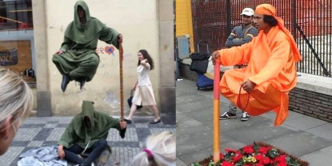 Sokak sanatçılarının en çok yaptığı illüzyon numaralarından biri de 'Havada oturan ya da duran adam'