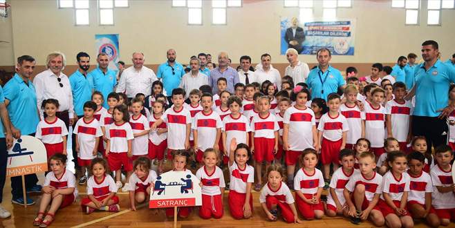 Orhangazi'de düzenlenen yaz spor okullarının startı verilirken, 2 bine yakın minik sporla buluştu.