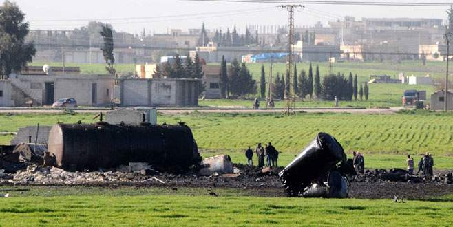 ABD öncülüğündeki koalisyon güçlerinin saldırısının ardından Şanlıurfa'nın Akçakale İlçesi'nin karşısındaki Suriye'nin Telabyad kentindeki IŞİD'e ait
