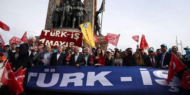 Türk-İş, 1 Mayıs Emek ve Dayanışma Günü dolayısıyla Taksim Meydanı'ndaki Cumhuriyet Anıtı'na çelenk bıraktı.