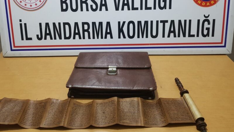 Bursa jandarması tarafından yapılan operasyonda, İstanbul’dan Bursa’ya satmak için tarihi eser getirdikleri belirlenen 2 kişi