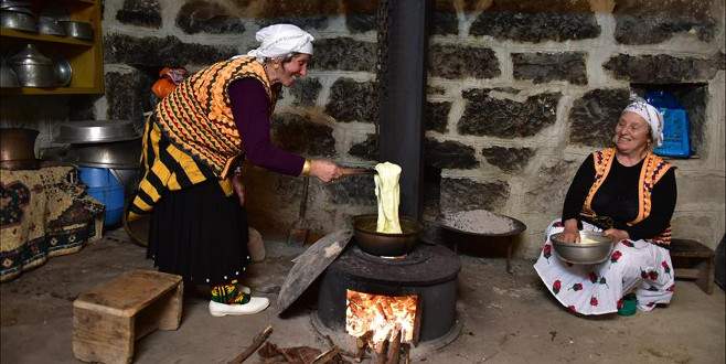Trabzon'da turistlerin bölge kültürünü yaşayarak öğrenmesi amacıyla oluşturulan köyü ziyaret edenler, yöre mimarisini yansıtan ev