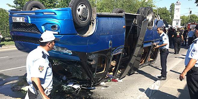 Otomobil yolcu minibüsüne çarptı: 16 yaralı
