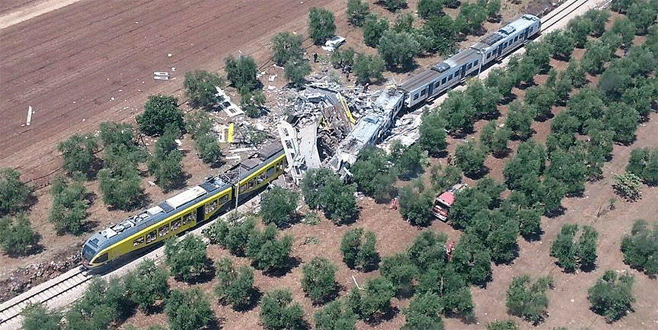 İtalya'nın güneyindeki Puglia bölgesinde iki banliyö treninin çarpışması sonucu meydana gelen kazada 20 kişinin öldüğü