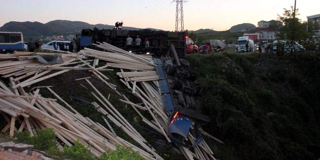 Zonguldak'ın Ereğli İlçesi'nde kontrolden çıkarak devrilen TIR'ın sürücüsü Ukraynalı Bablyuk Vasyl, yaralandı.
