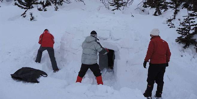 Uludağ’da dağcılar soğuktan ve kardan korunmak için kutup evleri yaptı.