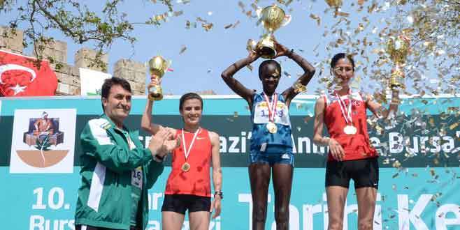 Osmangazi Belediyesi’nin bu yıl 10'uncusunu düzenlediği 15 kilometrelik Uluslararası Tarihi Kent Koşusu’nda birinciliği kadınlar ve