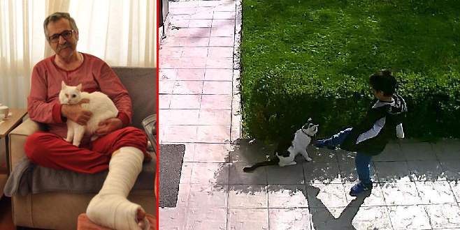 Kediyi tekmelemek isteyen çocuğu uyardığı için dayak yedi
