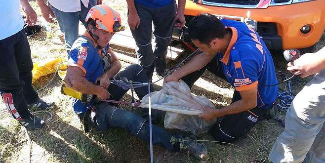 Van'ın İpekyolu ilçesinde düştüğü kuyuda 8 yavru dünyaya getiren köpek, AFAD ekiplerince kurtarıldı.